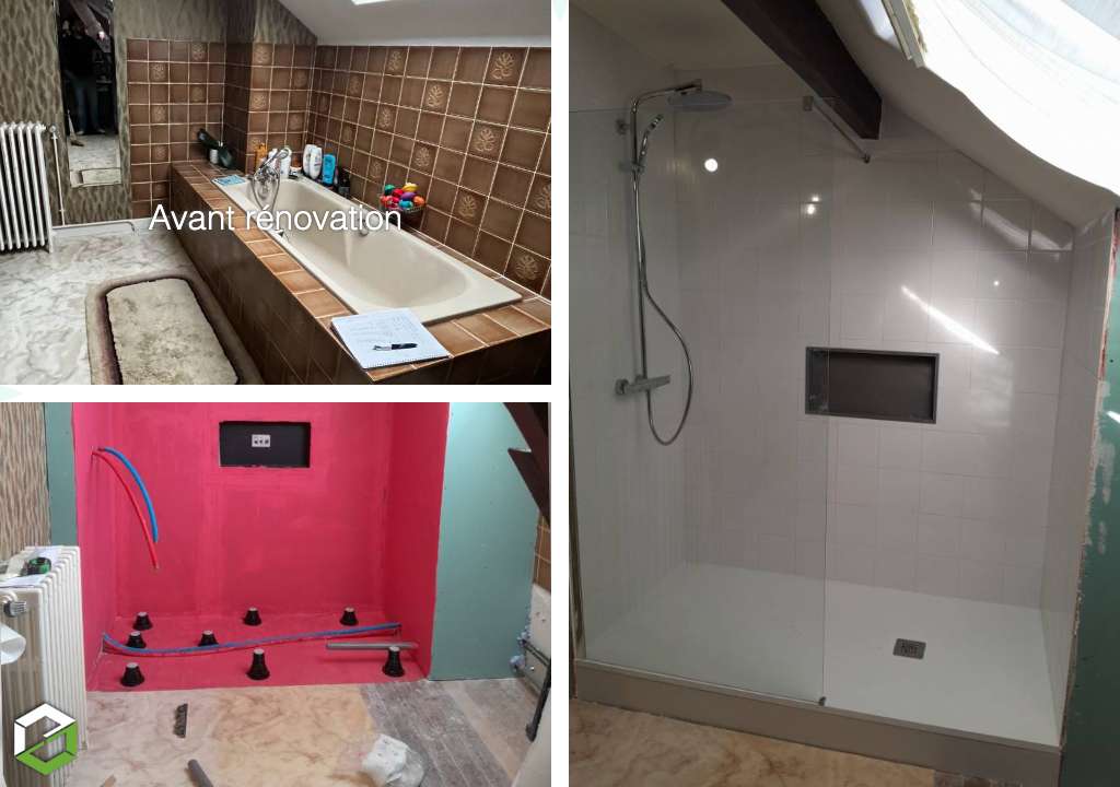 - Réfection de salle de bain complète y compris modification de cloisons, modification électriques, remplacement des sols, faience, etc...