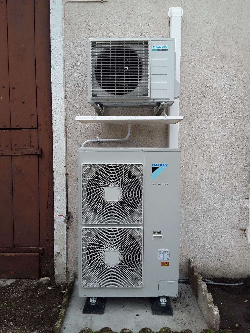 Installation d'une pompe à chaleur air eau Daikin haute température EKHBRD014ADV17 + ERSQ014AV1 en monophasé.